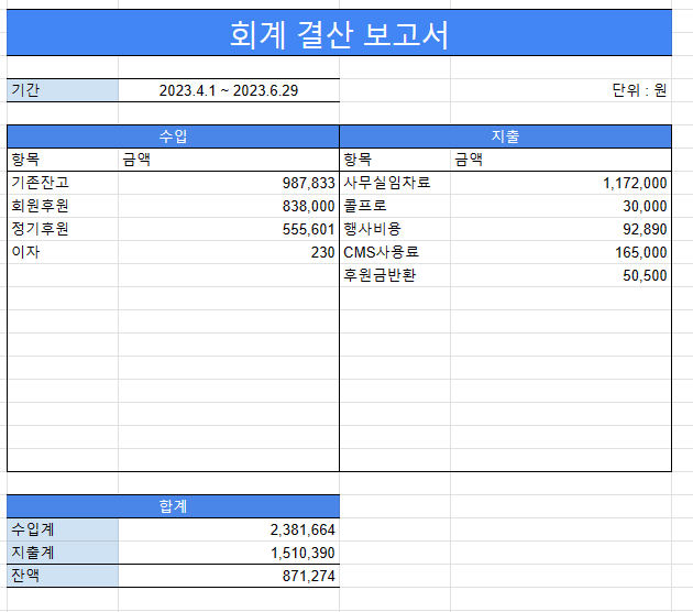 2023년도 2분기 회계 결산 내역을 다음과 같이 알려드립니다.