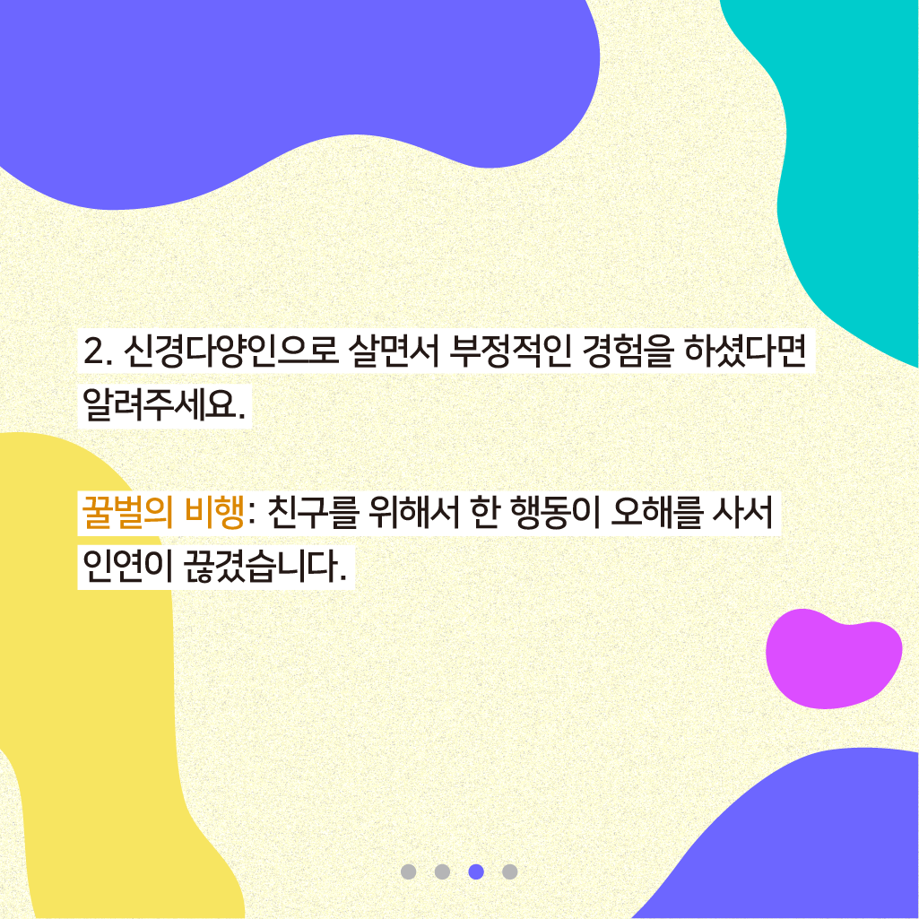 2. 신경다양인으로 살면서 부정적인 경험을 하셨다면 알려주세요.