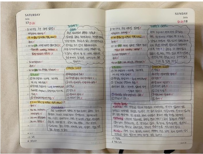 그 전까지는 공부 계획이라는 걸 모르는 사람이었어요. 대학에 와서도 시험 전날에 벼락치기를 했습니다. 그것도 친구가 없으면 안 했습니다. 친구랑 같이 과방(대학교에서 각 과마다 배정되어 있는 다용도실)에서 공부하면서 노는 게 재밌어서 벼락치기를 했던 것 같아요.